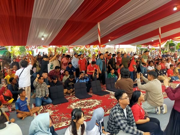 Ribuan warga Surabaya turut hadir di Balai Kota untuk menonton laga timnas Indonesia sembari menikmati kuliner yang tersedia dalam event Ramadhan Vaganza.