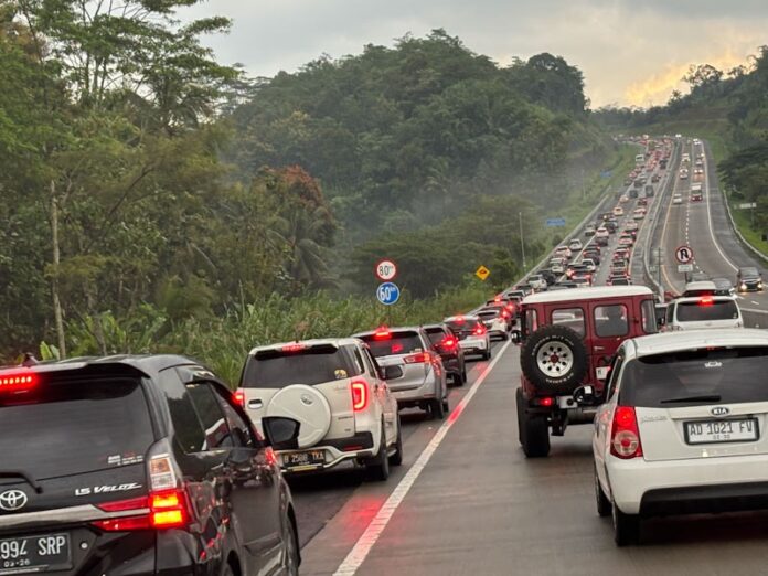Salatiga, nawacita – Kemacetan panjang terjadi di ruas Tol Trans Jawa, tepatnya dari kilometer 454 hingga kilometer 447, dari Salatiga menuju Bawen, Jawa Tengah, Rabu sore 2/4/2025. Kemacetan ini telah berlangsung sejak sebelum Rest Area Salatiga hingga mendekati gerbang tol keluar Bawen.