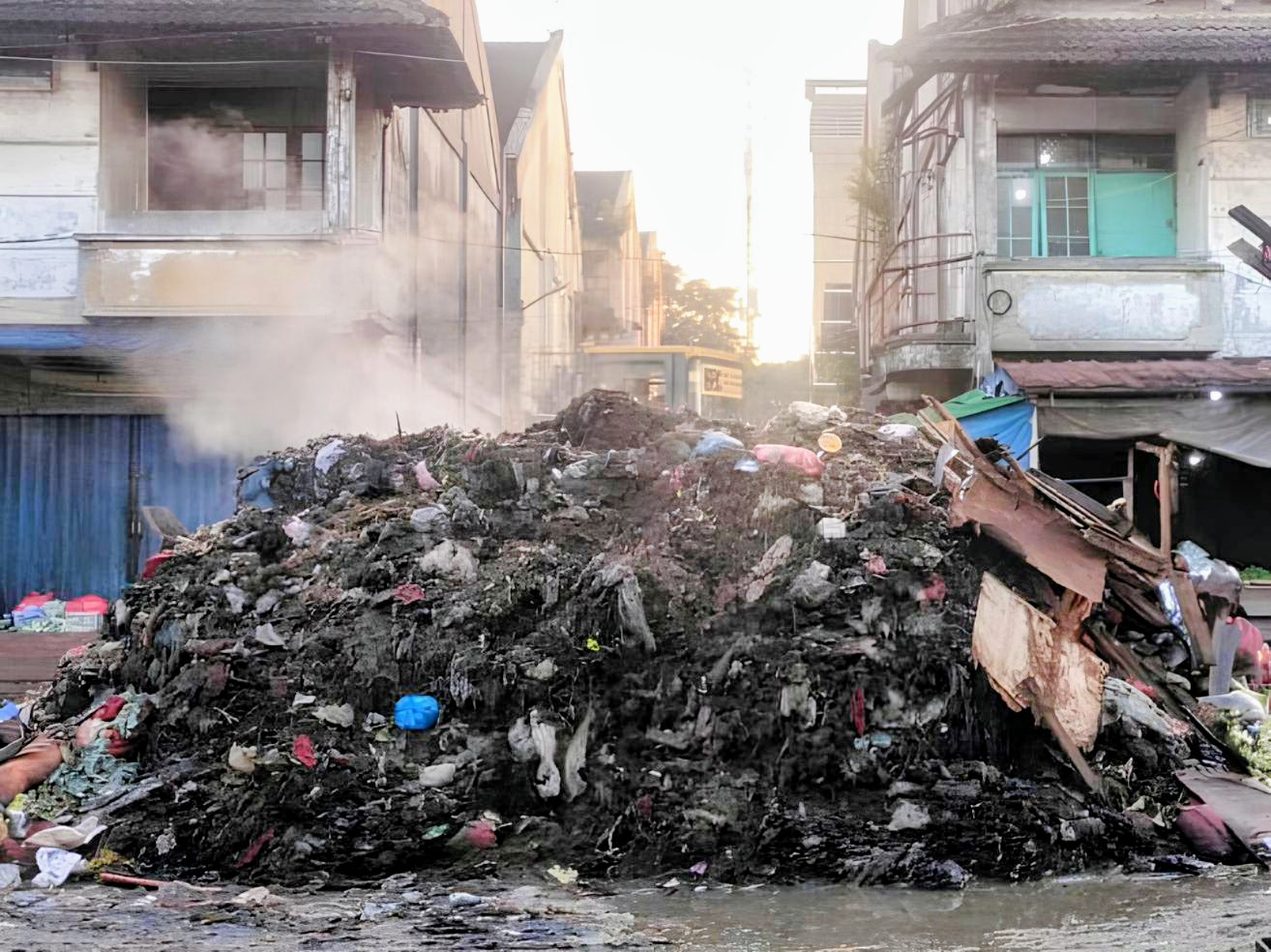 Sampah berserakan bahkan di jalan-jalan pasar. Bahkan jalan pasar terkesan seperti rawa, penuh dengan lumpur dan sampah ditambah dengan bau busuk yang menyengat.