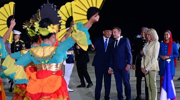 Presiden Macron diketahui telah tiba di Jakarta sekitar pukul 22.00 WIB bersama Ibu Negara Brigitte Macron dan delegasi resmi. Kedatangan mereka disambut hangat dalam upacara kehormatan dan turut dimeriahkan dengan penampilan Tari Nandak Ajer sebagai simbol sambutan budaya khas Indonesia.