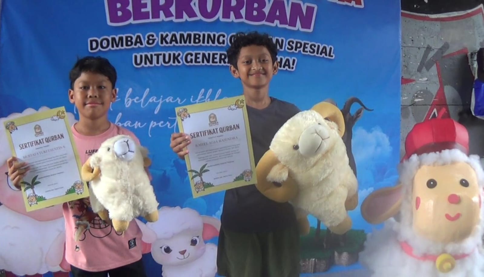 “Senang banget bisa kurban tahun ini, Bu,” tutur Raizel sambil tersenyum lebar.