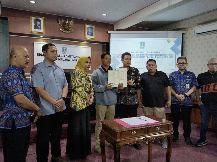 Surabaya, Nawacita.co – Kehadiran Wakil Bupati Sidoarjo, Mimik Idayana, pada forum ‘Penyerahan Kembali Ijazah Pekerja Oleh Dinas Tenaga Kerja dan Transmigrasi Provinsi Jawa Timur Kepada Pekerja Pekerja PT. Tedmonnindo Pratama’. Agenda tersebut diadakan oleh Dinas Tenaga Kerja Provinsi Jawa Timur, pada Kamis (5/6/2025).