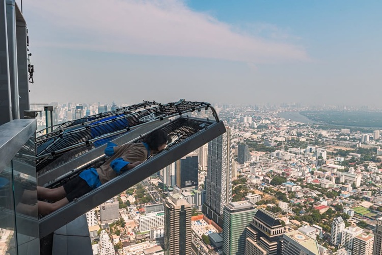 Atraksi ini memungkinkan turis untuk menikmati pemandangan dengan berbaring tengkurap di panel kaca dari ketinggian 300 meter. Bikin deg-degan, pengunjung akan bersandar pada sudut 65 derajat untuk menikmati pemandangan Bangkok.