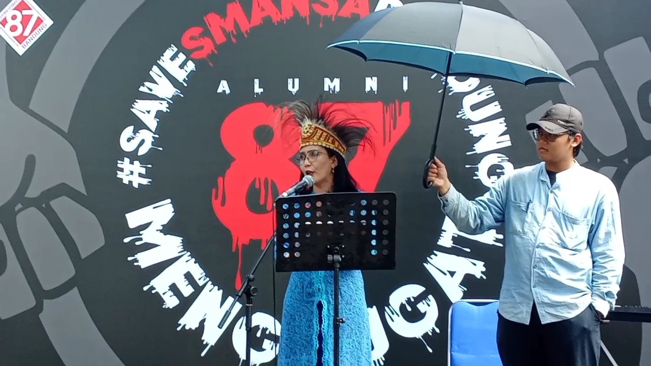 “Dari kasus SMANSA Bandung, kenapa saya gunakan topi Papua. Saya ingin mengatakan, persoalan ini persoalan Indonesia. Ini bukan soal satu sekolah tua, yang ingin tetap berdiri dan menjadi bagian dari mencerdaskan kehidupan bangsa,” katanya.