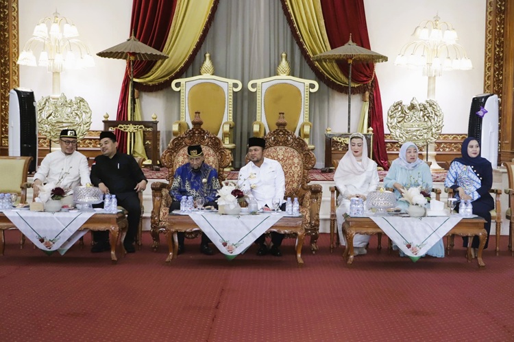 Tenggarong, Nawacita | Sebelum memulai kunjungan kerja (kunker) tiga hari ke Kutai Barat, Gubernur Kaltim H. Rudy Mas’ud (Harum) didampingi Ketua TP PKK Kaltim, Hj Sarifah Suraidah Harum beserta jajaran Pemprov Kaltim menyambangi Kedaton Kutai Kartanegara ing Martadipura pada Jumat (20/6/2025).