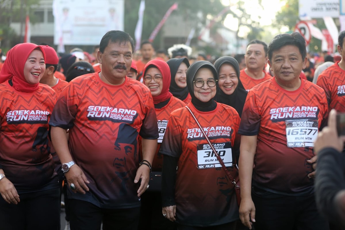 NGANJUK, nawacita – Puluhan ribu masyarakat JAwa Timur meramaikan event Soekarno Run di Nganjuk, Minggu, 29/6/2025. Bupati Nganjuk Marhaen Djumadi serta Ketua Fraksi PDIP DPRD Jatim Wara Renny Sundari Pramana juga ikut langsung bersama 21.000 peserta.