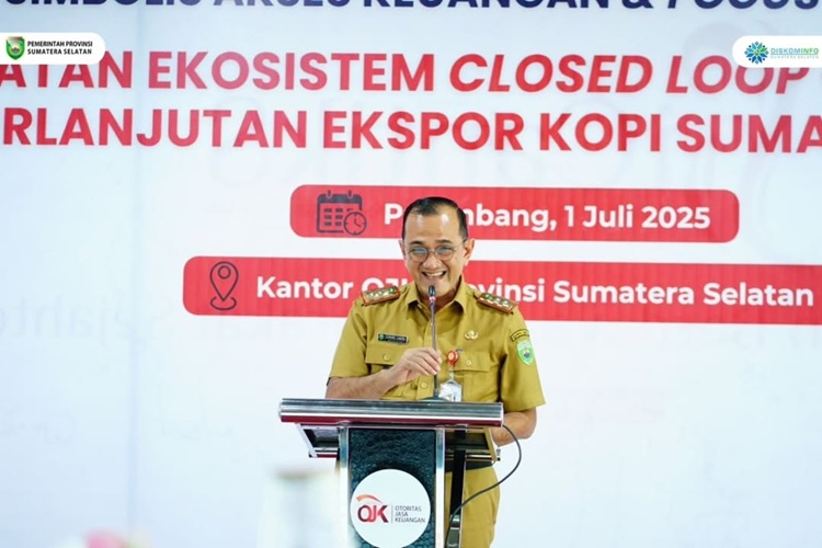 Palembang, Nawacita | Sekda Sumsel H. Edward Candra Menghadiri Penyerahan Simbolis akses Keuangan dan FGD “Penguatan ekosistem closed loop guna mendukung Eksport Kopi Sumatera Selatan”. bertempat di Aula Lantai 4 Gedung OJK Sumsel (1/7/2025).