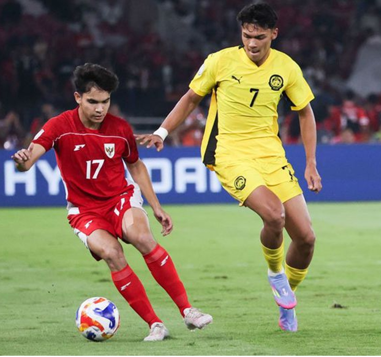 Sementara itu, Malaysia tampil lebih pragmatis. Tim besutan Nafuzi Zain memilih bertahan dalam dan mengandalkan serangan balik cepat. Meski cenderung pasif, Malaysia mampu menciptakan beberapa peluang berbahaya, termasuk sepakan Izwan Yuslan di menit ke-58 yang memaksa kiper Indonesia, Cahya Supriadi, melakukan penyelamatan gemilang.