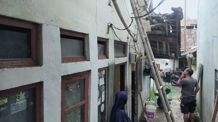 “Kejadiannya tadi pagi, sekitar pukul setengah delapan kurang ya. Ketika saya mau berangkat kerja, tiba-tiba ada suara ambruk langsung gitu gemuruh kenceng banget. Dan saya kemudian tengok ke belakang ternyata puing-puing di atas itu udah roboh memenuhi ini, jalan depan ini gitu. Lekas-lekas saya kerjakan, bereskan karena takutnya ada paku dan sebagainya, saya bereskan, rapikan supaya anak-anak yang sering bermain nggak terluka gitu,” kata Alvin, salah seorang saudara Kakek Aye saat diwawancarai pada Selasa (12/8/2025) petang.