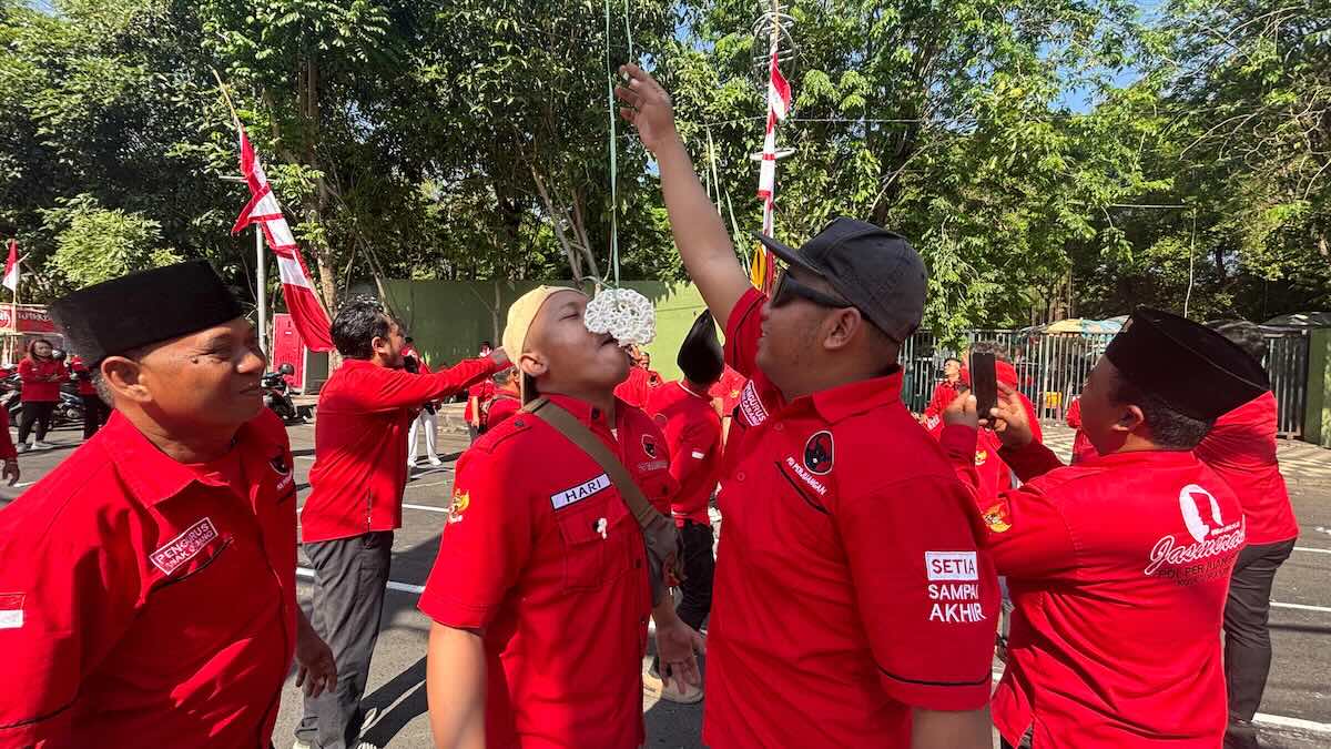 “Kalau pesertanya yaitu dari segenap pengurus DPC, Fraksi, PAC, dan kemudian sekretaris, bendara Ranting. Badan dan sayap, Satgas, segenap kader, dan relawan, PDI Perjuangan,” ucap Plt. Ketua DPC PDI Perjuangan Kota Surabaya, Yordan M. Batara-Goa, usai upacara berlangsung.
