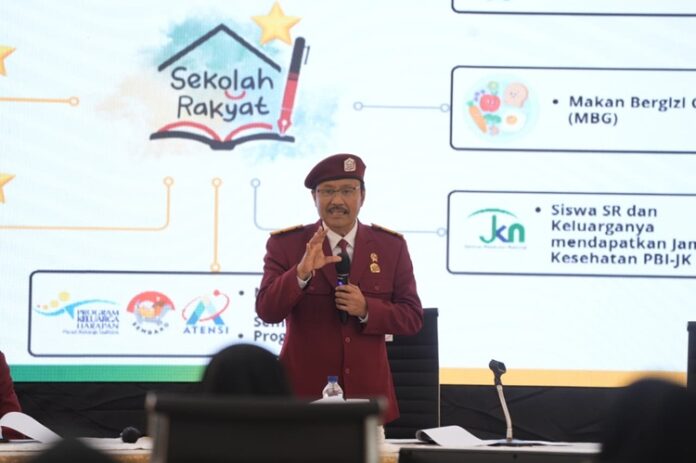 Jakarta, Nawacita | Menteri Sosial (Mensos) Saifullah Yusuf atau Gus Ipul memperkenalkan seragam almamater yang akan digunakan seluruh siswa Sekolah Rakyat. Almamater ini diperkenalkan Gus Ipul saat memberikan pembekalan kepada Kepala Sekolah dan Guru Sekolah Rakyat.