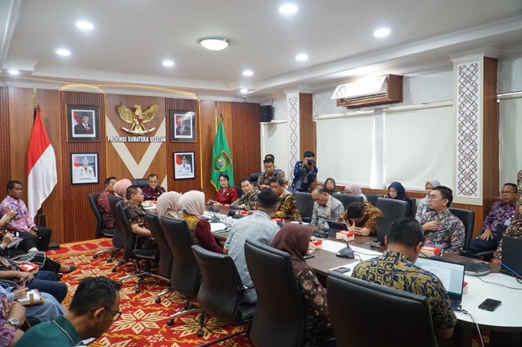 Rapat ini berlangsung di Ruang Rapat Sekda Sumsel pada Kamis (21/08/2025).