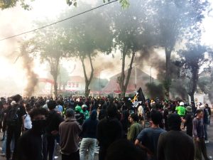 Teriakan anarkis terus menggema dari para pengunjuk rasa.