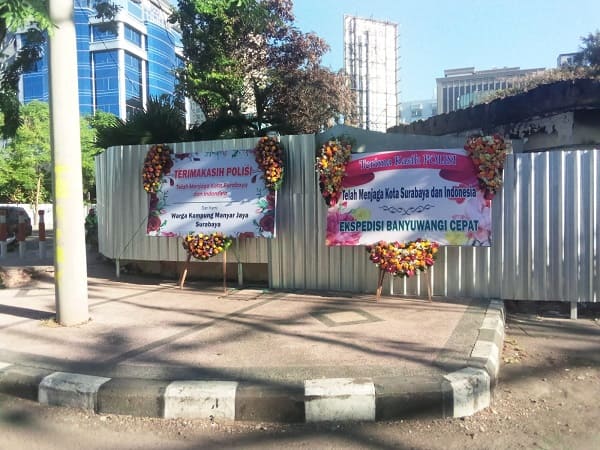 Ucapan terima kasih terhadap pihak kepolisian juga tampak dari masyarakat yang telah mewujudkan keamanan bagi masyarakat ditengah kerusuhan yang terjadi di Kota Pahlawan.