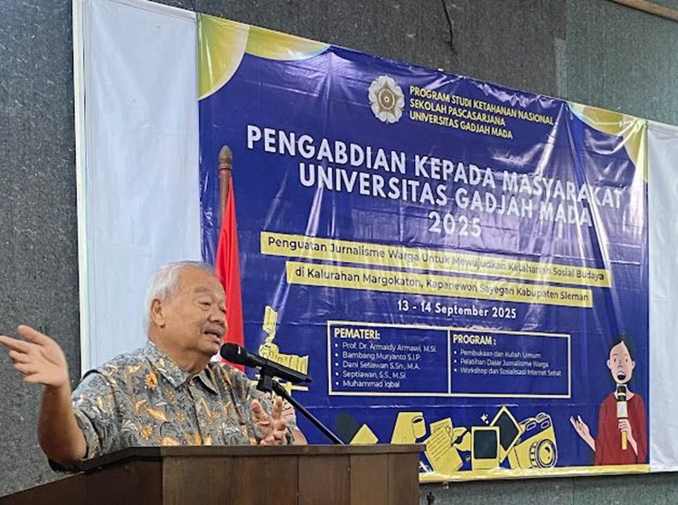Hal ini disampaikan dalam kuliah umum dan pelatihan bertajuk “Penguatan Jurnalisme Warga untuk Mewujudkan Ketahanan Sosial Budaya” yang digelar di Aula Balai Kelurahan Margokaton, Kapanewon Seyegan, Sleman, Jumat (13/9/2025).