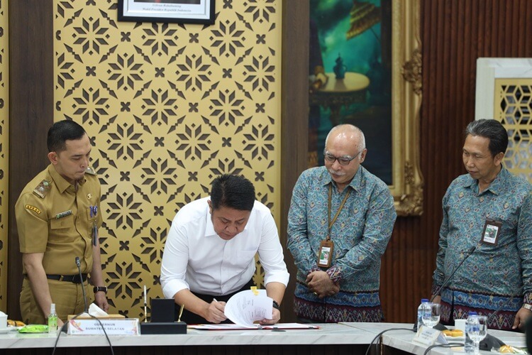 Palembang, Nawacita | Pemprov Sumsel bersama Kantor Wilayah Direktorat Jenderal Kekayaan Negara (DJKN) Sumsel, Jambi, dan Bangka Belitung menandatangani Nota Kesepakatan tentang Pengelolaan Barang Milik Daerah. Penandatanganan dilakukan oleh Gubernur Sumsel, H. Herman Deru, bersama Kakanwil DJKN Ferdinan Lengkong di Ruang Rapat Griya Agung Palembang, Selasa (16/9/2025).