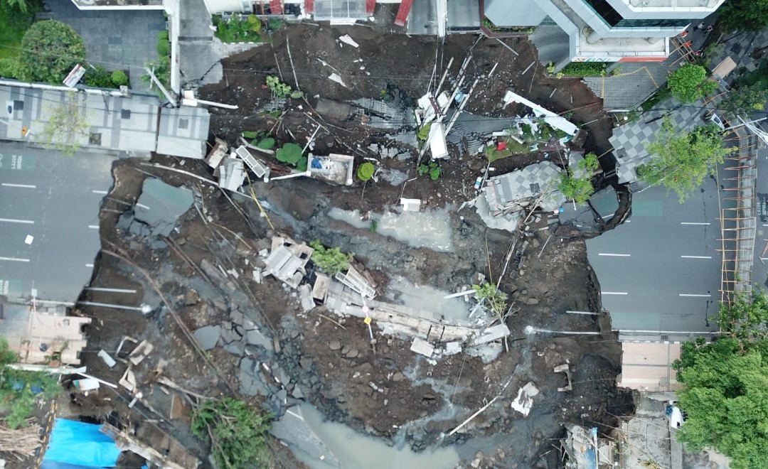 “Ada kebocoran pada pipa air, air dari pipa tersebut mengikis (tanah) di bawah jalan sehingga insiden ini terjadi,” ungkapnya.