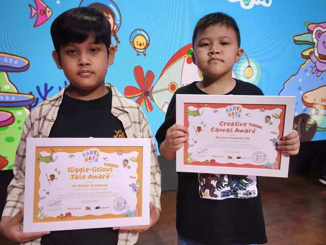 Selain itu juga ada Kaylee Ann Siswanto (Cita Hati Christian School) dengan karya “Lira and Giggle”, finalis kategori Imagination Wizard Award. Dan Raynold Alexander Sie (SD Kristen Petra 7 Surabaya) dengan karya “The World of Monsters”, finalis kategori Creative Canvas Award.