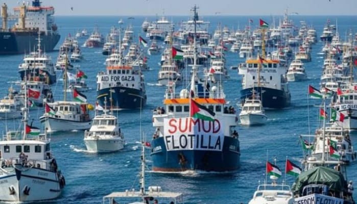 Global Sumud Flotilla, melibatkan sekitar 45 kapal yang membawa para politisi dan aktivis dari berbagai negara termasuk aktivis Swedia Greta Thunberg, berangkat dari Spanyol bulan lalu dengan tujuan menembus blokade Israel atas Jalur Gaza, yang ditetapkan oleh PBB sedang dilanda bencana kelaparan.