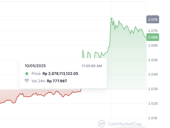 Pada Minggu (5/10/2025), harga Bitcoin tercatat naik hampir 3 persen dan mencapai 125.449,80 dolar AS atau sekitar Rp2,078 miliar per keping. Pencapaian ini menjadi level tertinggi dalam dua bulan terakhir, setelah sebelumnya sempat mengalami koreksi pada pekan sebelumnya.