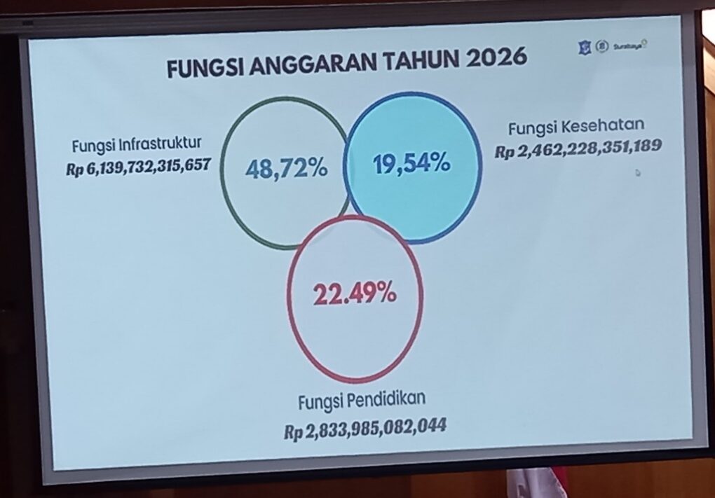 Untuk tahun 2026, Pemkot Surabaya menargetkan pertumbuhan ekonomi sebesar 5,8 persen, peningkatan Indeks Pembangunan Manusia (IPM), serta penurunan angka kemiskinan dan gini rasio.
