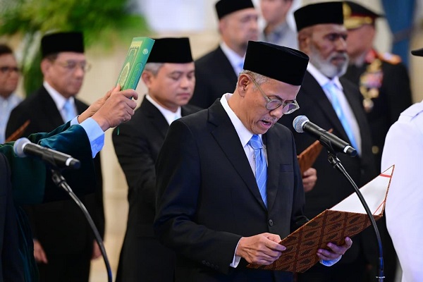 Dengan sikap tegap dan penuh khidmat, para Dewan Komisioner LPS mengucapkan sumpah jabatan yang didampingi oleh pejabat rohani dan disaksikan langsung oleh Presiden Prabowo.