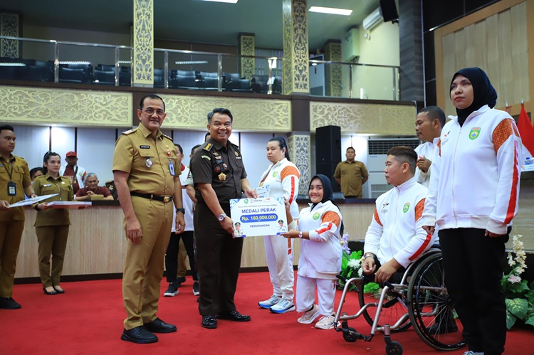 Penyerahan bonus tersebut dilakukan oleh Sekretaris Daerah Provinsi Sumsel, H. Edward Candra, mewakili Gubernur Sumsel H. Herman Deru bertempat di Graha Auditorium Bina Praja, Senin (13/10/2025).