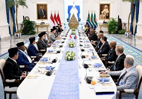 JAKARTA, Nawacita – Suasana hangat dan akrab mewarnai pertemuan bilateral yang digelar dalam format working lunch antara Presiden Republik Indonesia Prabowo Subianto dan Presiden Republik Afrika Selatan Matamela Cyril Ramaphosa beserta delegasi masing-masing, di Istana Merdeka, Jakarta, pada Rabu, 22 Oktober 2025. Di atas meja panjang, tersaji deretan menu yang memadukan cita rasa tradisional Indonesia dengan sentuhan modern, menggambarkan filosofi persahabatan dua bangsa yang kaya budaya.