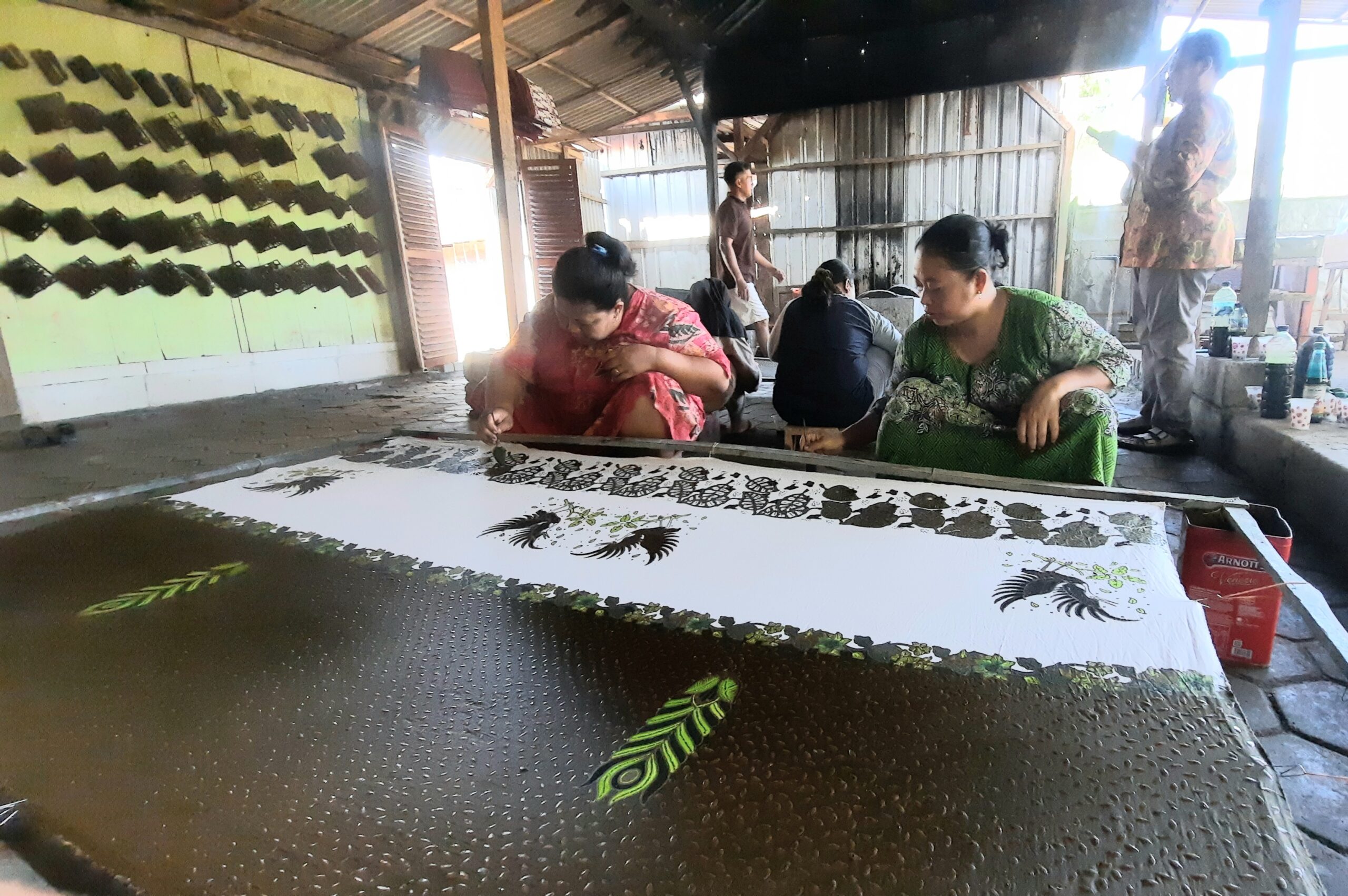 “Sekarang sudah tidak ditinggal lagi, dan ditunggui terus di rumah karena memang butuh tenaga laki-laki untuk proses produksi. Terutama saat proses proses nglorot dan cap butuh tenaga kuat. Kalau ibu-ibu lebih ke mewarnai sampai menyetrika, dan packing,” kata Tutik.
