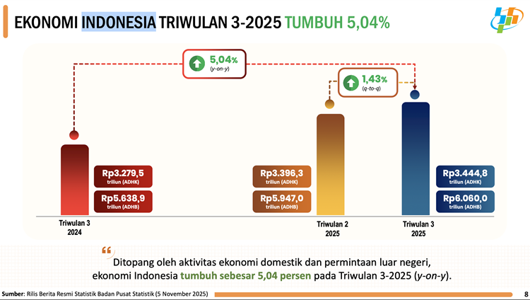 Di Tengah Ketidakpastian Global, BPS Catat Ekonomi Indonesia Triwulan III-2025 Tumbuh 5,04 Persen
