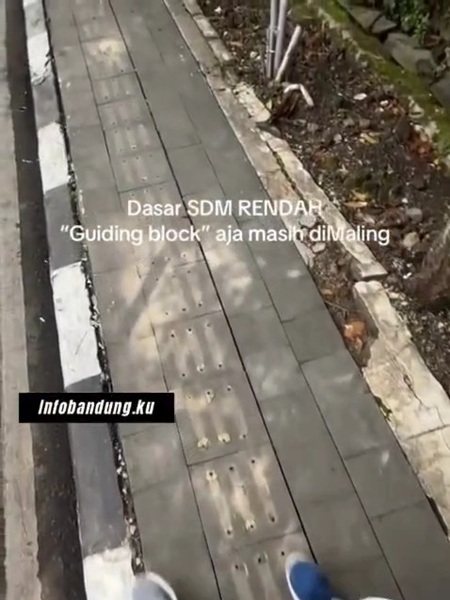 Bandung, Nawacita – Viral di media sosial sebuah video amatir menunjukan Guiding Block untuk pada ruas trotoar salah satu jalan di Kota Bandung hilang. Dalam video yang diunggah akun @info bandungku, tampak beberapa bagian guiding block tercopot dan hilang, meninggalkan celah pada permukaan trotoar.