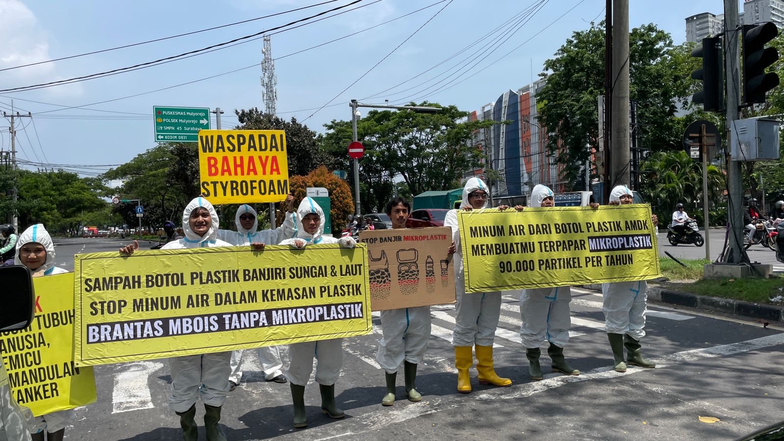 Di Surabaya, Ecoton bersama mahasiswa Unesa dan Unair menggelar aksi keprihatinan di Perempatan Mulyorejo. Poster-poster protes dibentangkan, menyerukan satu pesan utama: hentikan plastik sekali pakai, terutama botol air minum dalam kemasan.