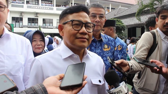 Momen tersebut terjadi saat Cak Imin melakukan dorstop bersama wartawan usai berkunjung ke SMKN 1 Bandung pada Senin, (1/12/2025).