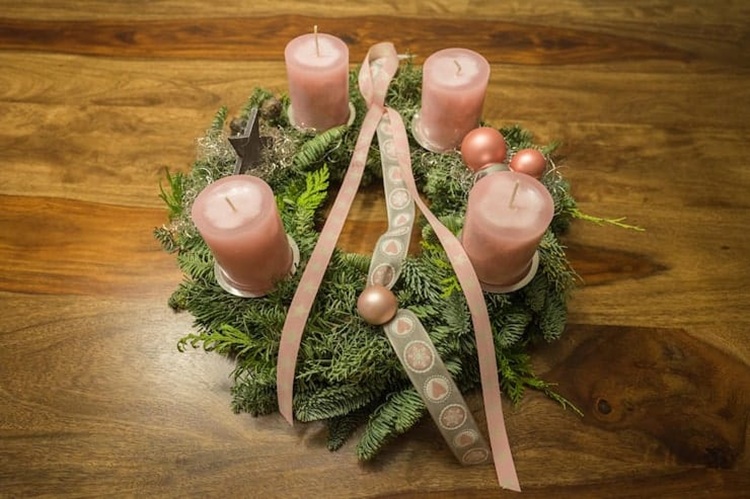 3. Lilin ketiga: biasanya berwarna merah muda, sebagai lambang sukacita dan kegembiraan karena kedatangan Tuhan semakin dekat.