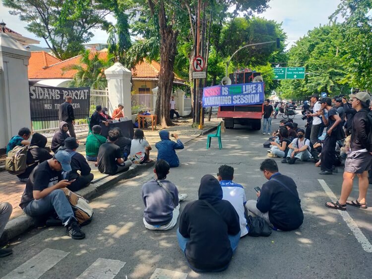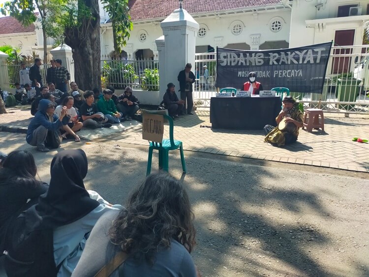 Puluhan Massa Gelar Sidang Rakyat di Depan PN Surabaya Sebagai Bentuk Ketidakpercayaan pada Proses Hukum