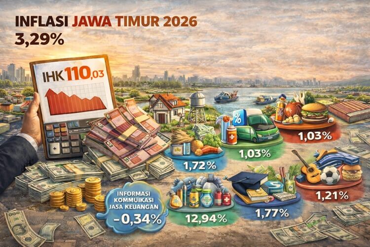 Surabaya, Nawacita.co – Badan Pusat Statistik (BPS) Provinsi Jawa Timur mencatat inflasi tahunan (year on year/y-on-y) sebesar 3,29 persen pada Januari 2026, dengan Indeks Harga Konsumen (IHK) sebesar 110,03.