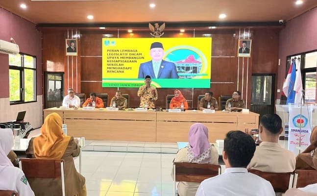 Anggota DPRD Jatim Sumardi saat membuka kegiatan ini pun meminta segenap warga sekolah untuk meningkatkan kesiapsiagaan dan kewaspadaan terhadap potensi bencana yang ada.