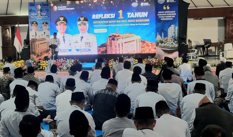 Refleksi satu tahun kepemimpinan Bupati Setyo Wahono dan Wabup Nurul Azizah digelar di Pendopo Malowopati Pemkab Bojonegoro, Jumat (20/2/2026) sore hingga waktu buka puasa. Dalam kegiatan tersebut dihadiri Forkopimda, tokoh masyarakat, Kepala OPD, Camat, organisasi masyarakat, dan media.