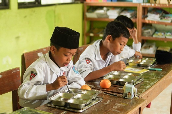 Caption Foto: Siswa menikmati menu MBG.