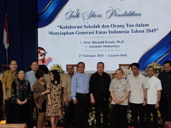 Hal itu disampaikan Guru Besar FEB UI, Prof. Rhenald Kasali, Ph.D., dalam Talkshow Pendidikan bertema Kolaborasi Sekolah dan Orang Tua dalam Menyiapkan Generasi Emas Indonesia 2045, di SMA Katolik St. Louis 1 Surabaya, Jumat (27/2/2026).
