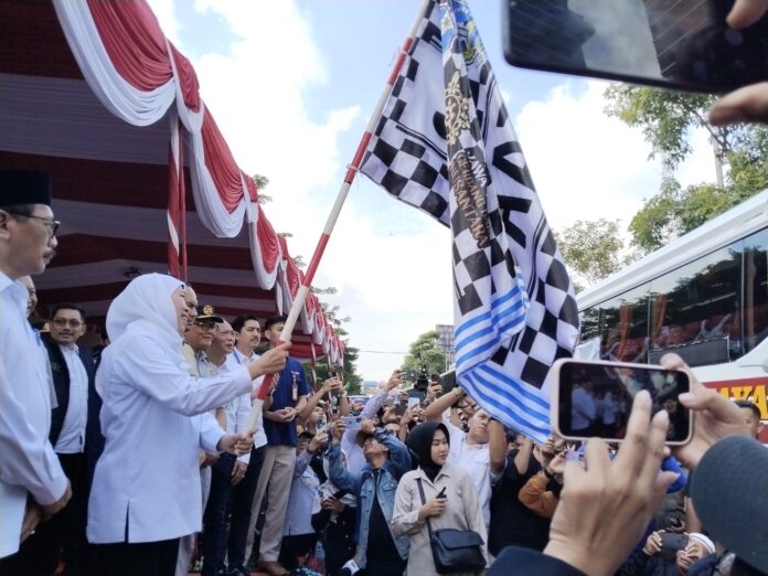 Surabaya, Nawacita – Pemerintah Provinsi Jawa Timur terus memaksimalkan layanan publik untuk mendukung kelancaran arus mudik Lebaran 2026. Gubernur Jawa Timur, Khofifah Indar Parawansa, menyebut program mudik gratis menjadi bagian dari upaya menghadirkan perjalanan yang aman dan nyaman bagi masyarakat.