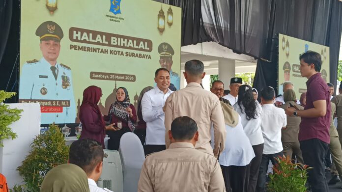 Nawacita – Pemerintah Kota (Pemkot) Surabaya menggelar kegiatan halal bihalal yang diikuti oleh seluruh karyawan di lingkungan pemkot, Rabu (25/3/2026). Kegiatan ini menjadi momentum untuk mempererat silaturahmi sekaligus meneguhkan semangat saling memaafkan usai menjalani ibadah Ramadan.