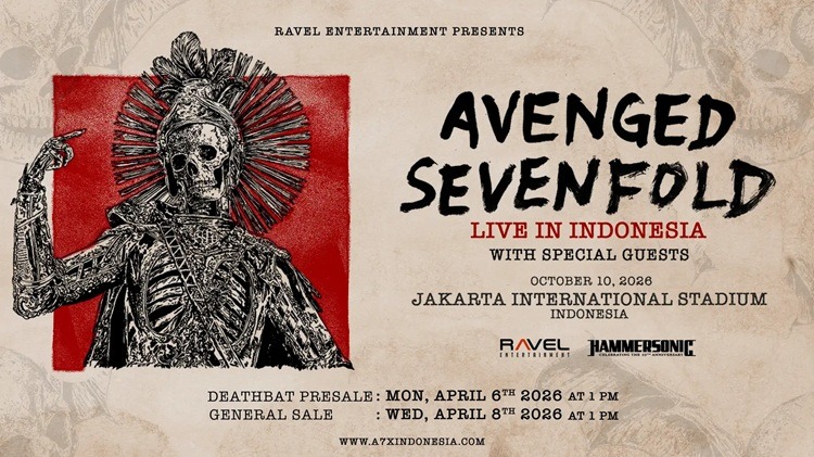 Jakarta, Nawacita | Grup band heavy metal legendaris, Avenged Sevenfold atau yang biasa disebut A7X akan kembali menyapa para Deathbat — sebutan penggemar A7X — di Indonesia, dengan menggelar konser “Avenged Sevenfold Live in Indonesia” di Jakarta International Stadium (JIS), Jakarta, 10 Oktober 2026.