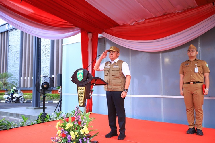 Atas nama pribadi dan Wakil Gubernur, ia juga menyampaikan ucapan Minal Aidin Wal Faizin, mohon maaf lahir dan batin kepada seluruh peserta apel.